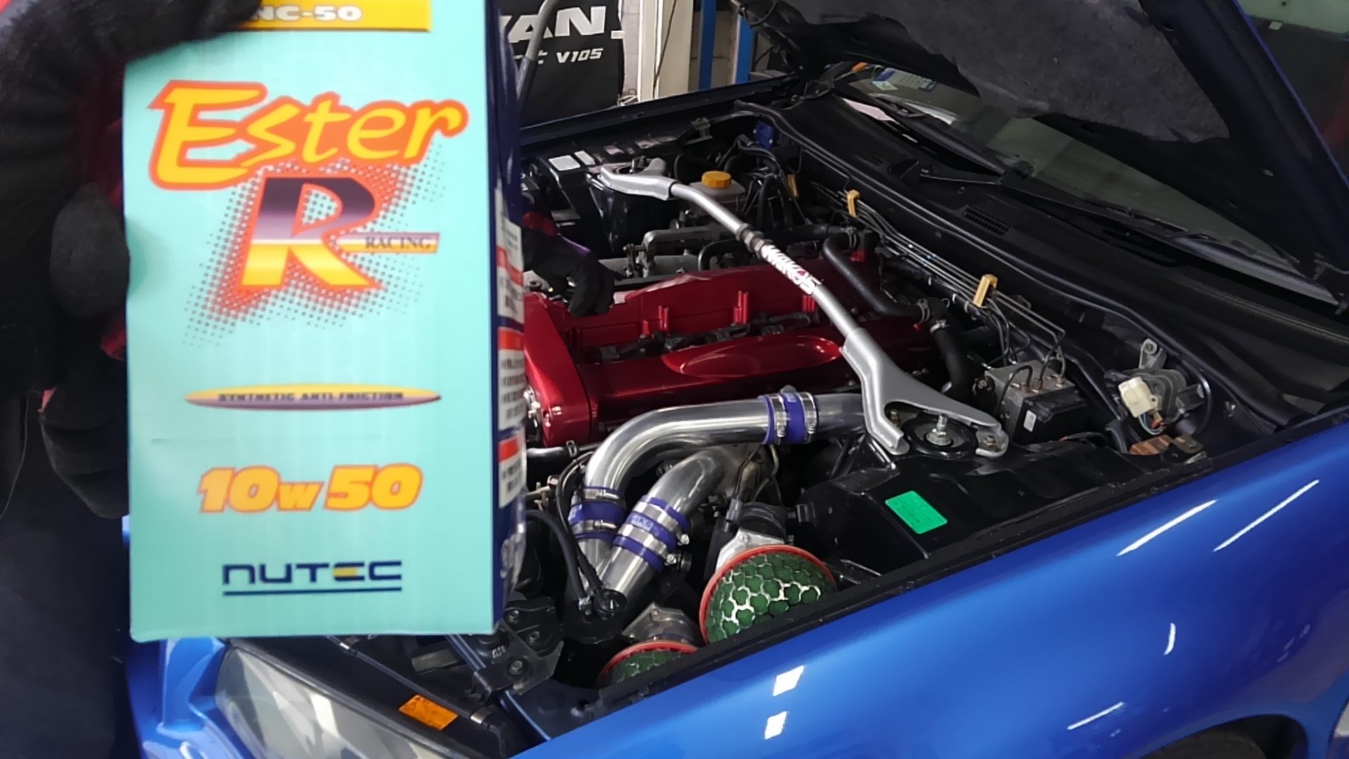 34GT-Rのお客様のオイル交換をしましたー以前のご来店時はワコーズのオイルでしたが、今回はニューテックのエンジンオイルをチョイスです オーナーさんからも「ニューテックもいいよね」と好評を頂いております ・・・やっぱ34はかっこいいな〜 (2018/02/09up)