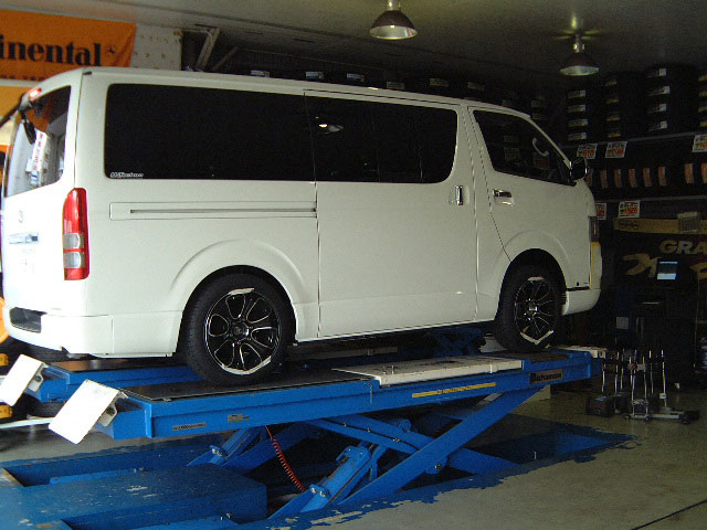 お仕事用の車でもハイエースはドレスアップしたくなる車です。 手始めに!?ホイールを16インチにインチアップ! タイヤはもちろんVAN用マップ! ちょっと出るというマッチングでしたが、 ちょうどツライチに収まってます。 (2007/08/11up)
