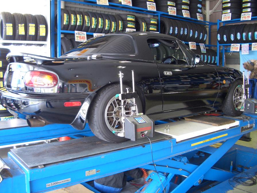 久しぶりのロードスターアライメントです!こちらに引っ越して来たらしいのですが これからもタイヤガーデントヨナカを 宜しくお願いします! (2011/04/25up)